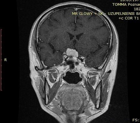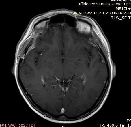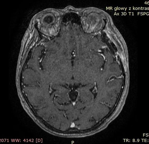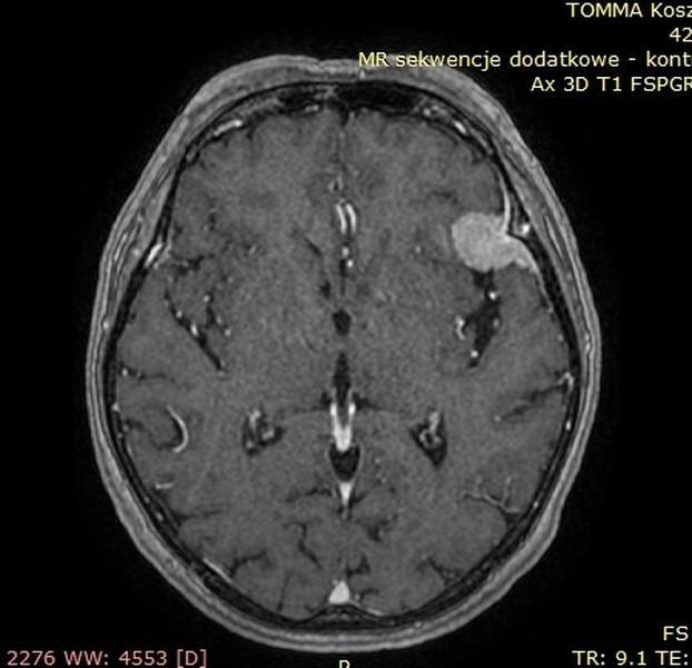 Pacjentka była operowana, guz usunięto całkowicie. W badaniu histopatologicznym łagodny oponiak.